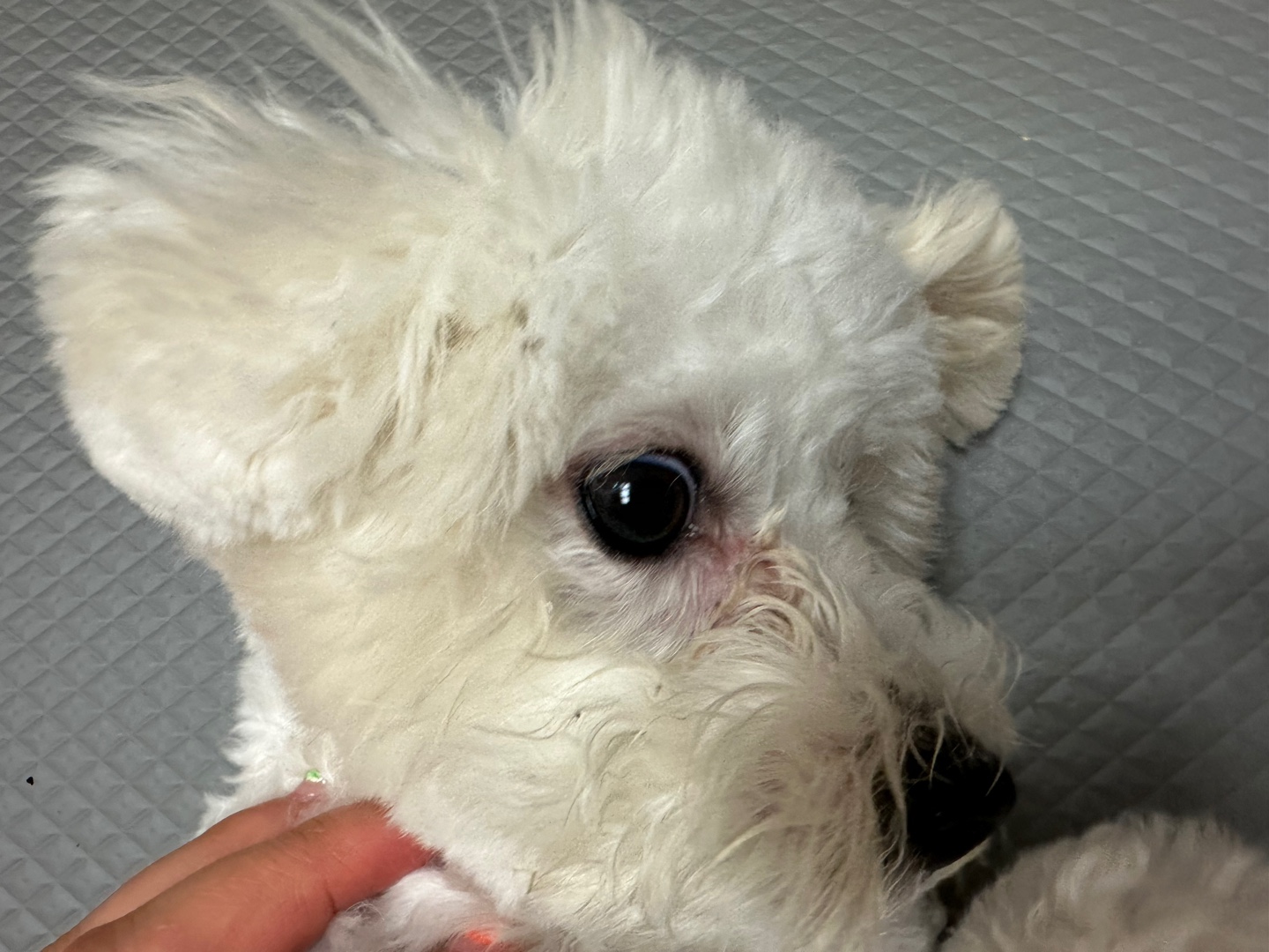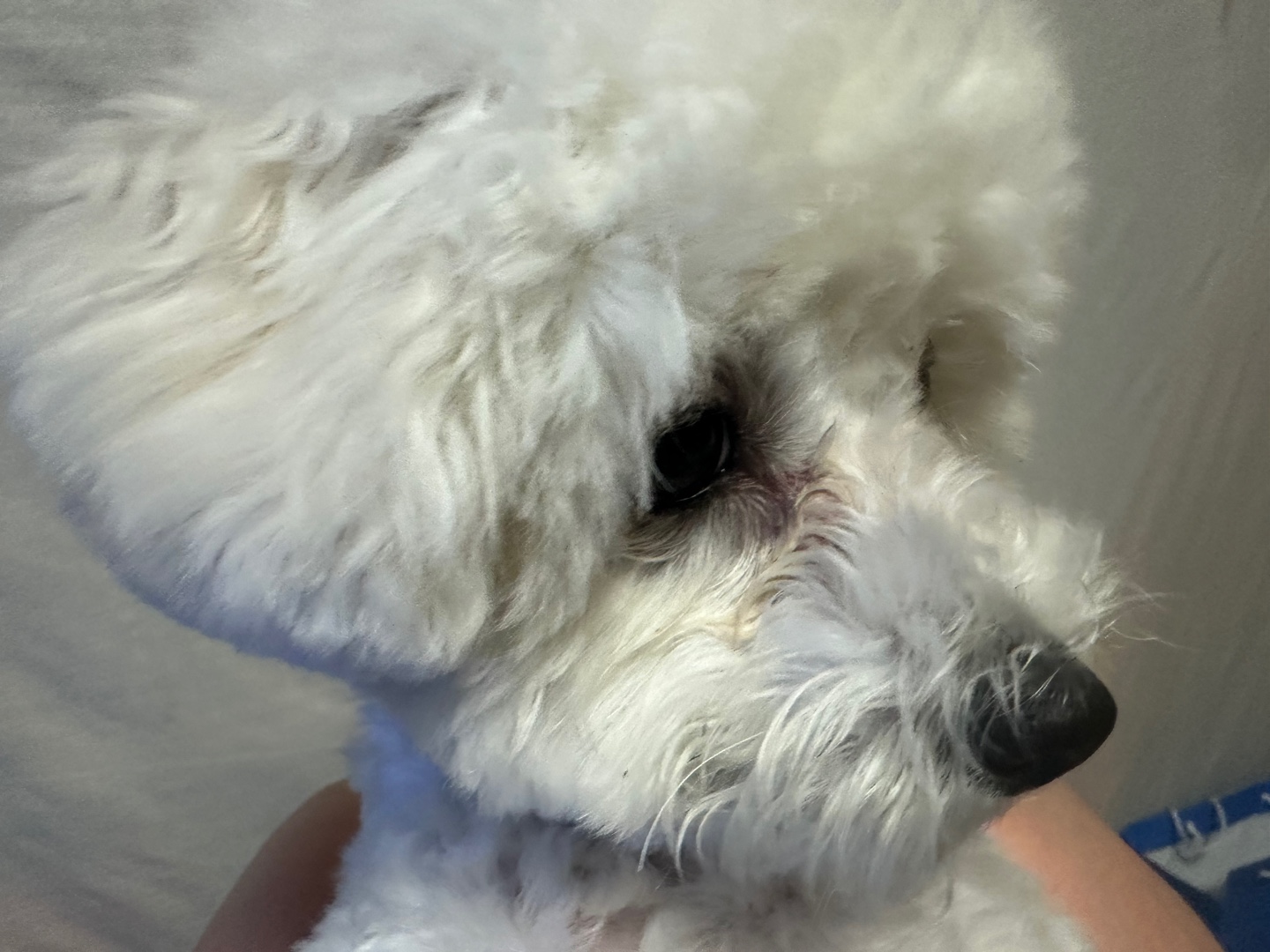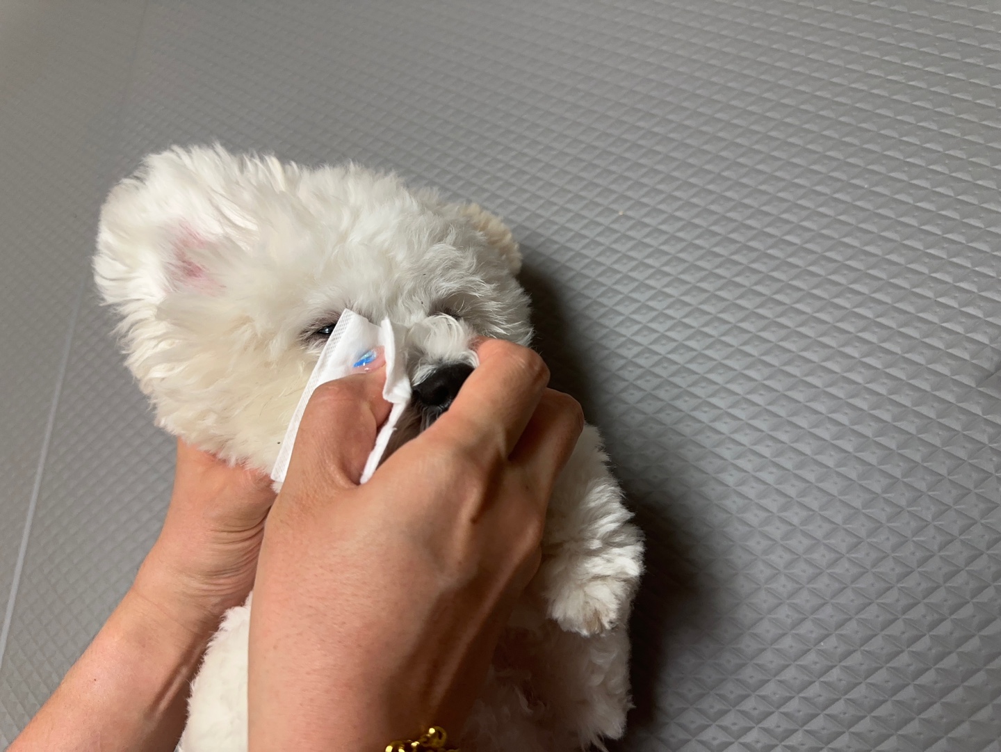 눈 주변 털이 자라나며 눈을 찌르게 되면 아이는 불편함을 느끼고, 눈물이 과도하게 분비될 수 있어요.