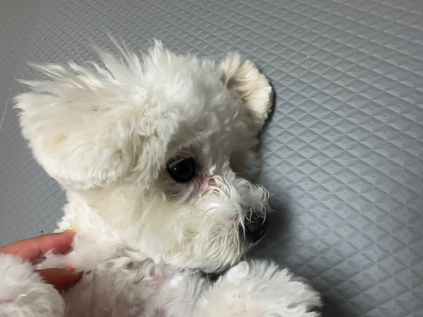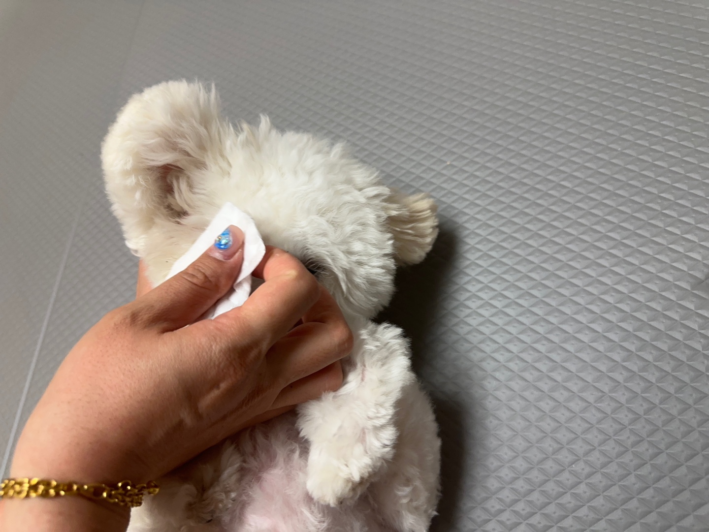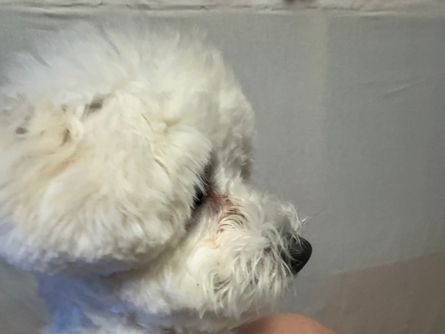 눈 주변 털이 자라나며 눈을 찌르게 되면 아이는 불편함을 느끼고, 눈물이 과도하게 분비될 수 있어요.