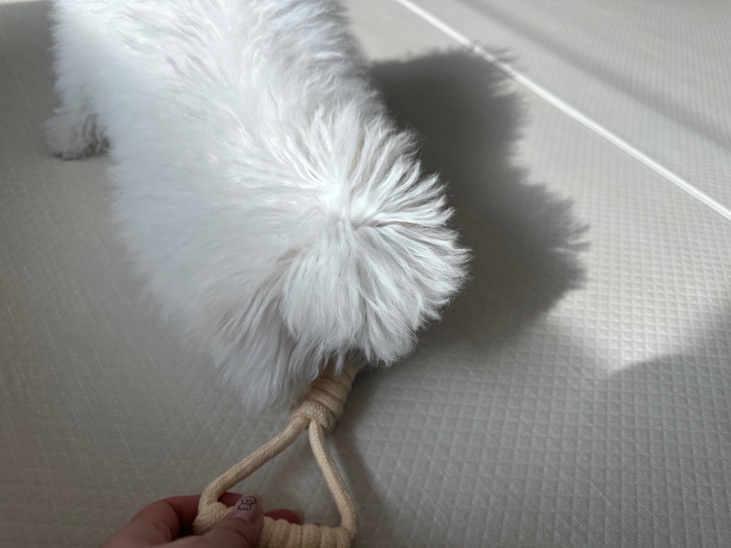 - 강아지 터그놀이: 보호자와 끈이나 로프 등을 가지고 서로 당기고 버티는 놀이입니다.