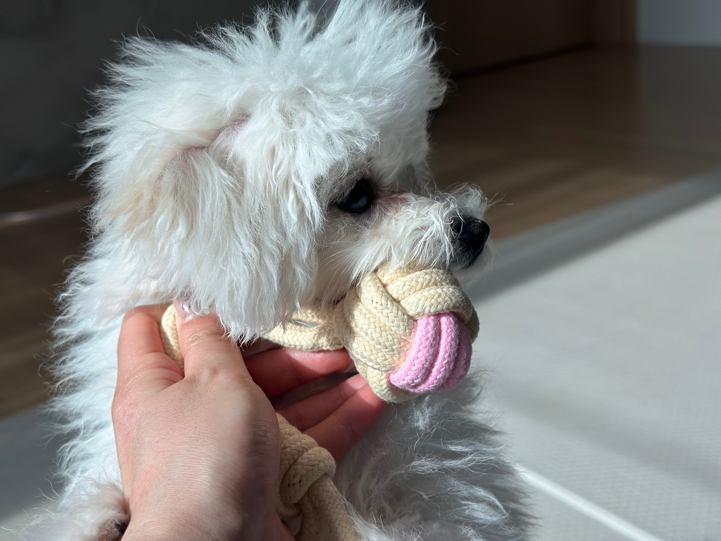 - 면 로프: 부드럽고 내구성이 높으며, 강아지의 치아 건강에도 비교적 안전합니다.