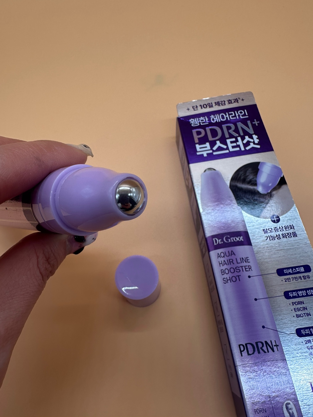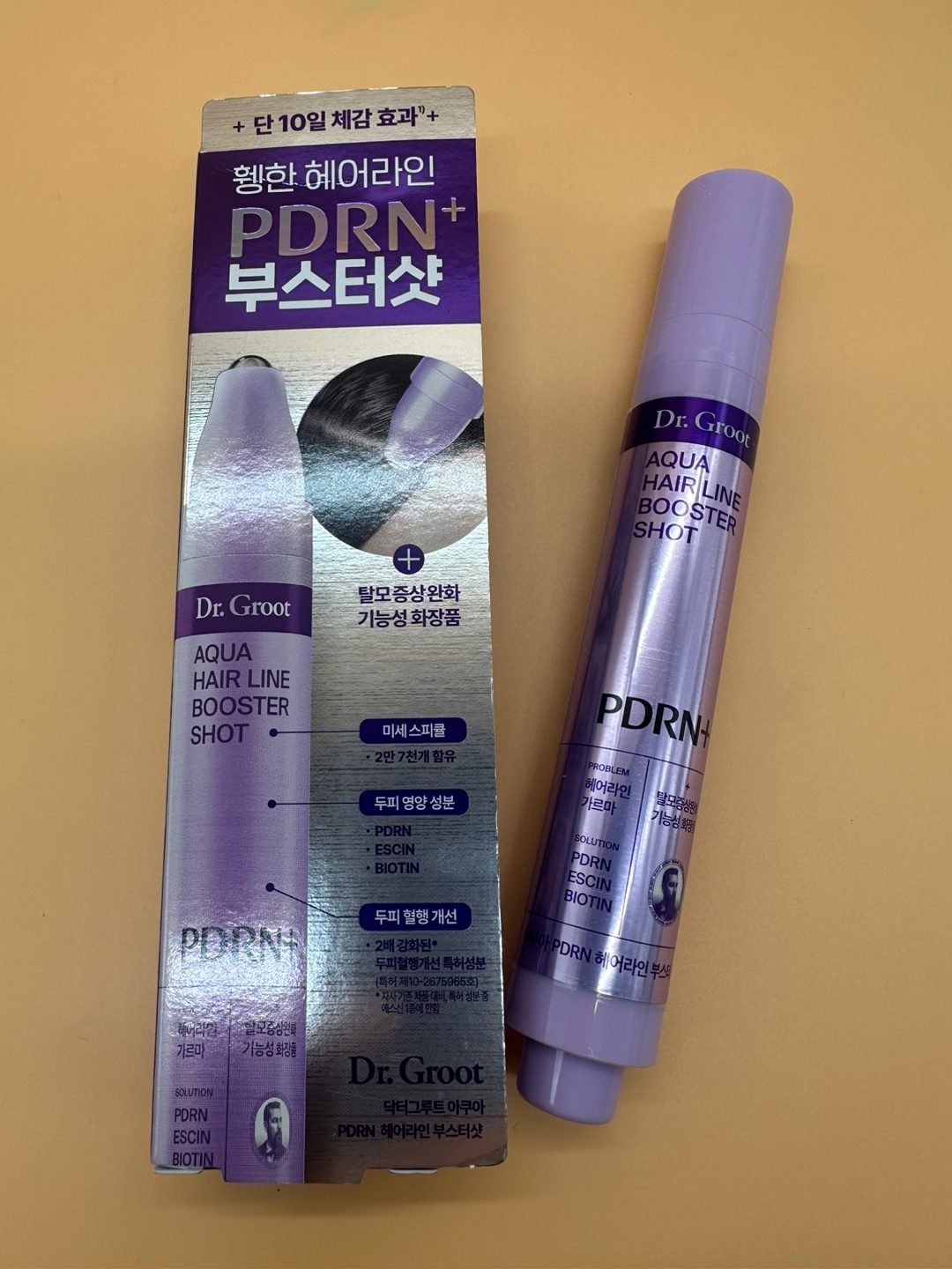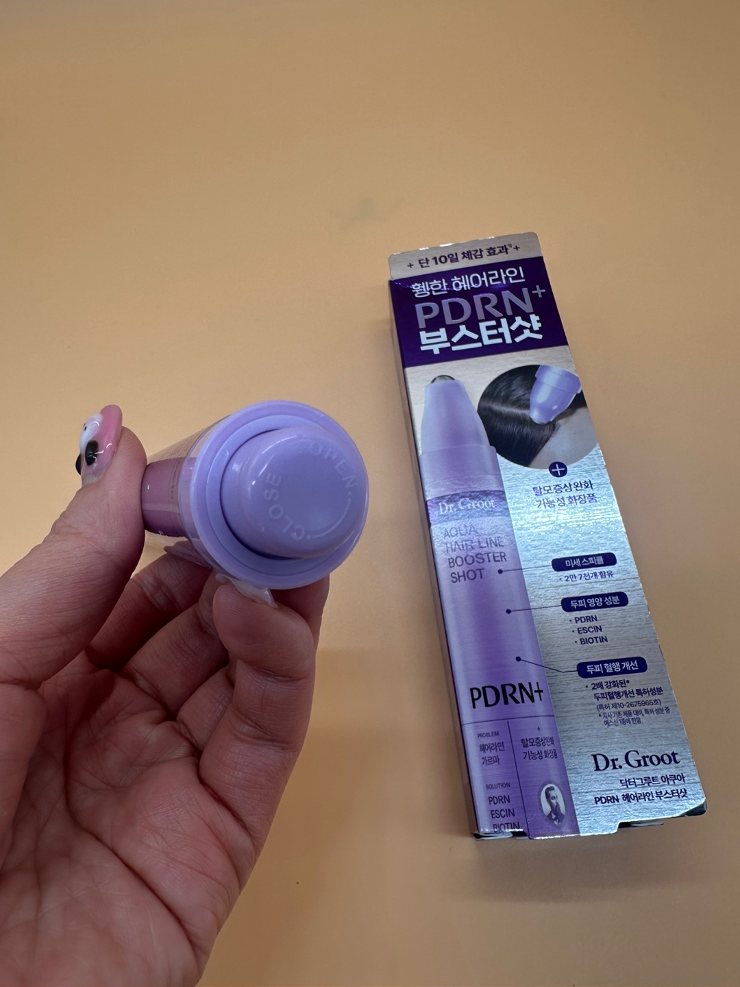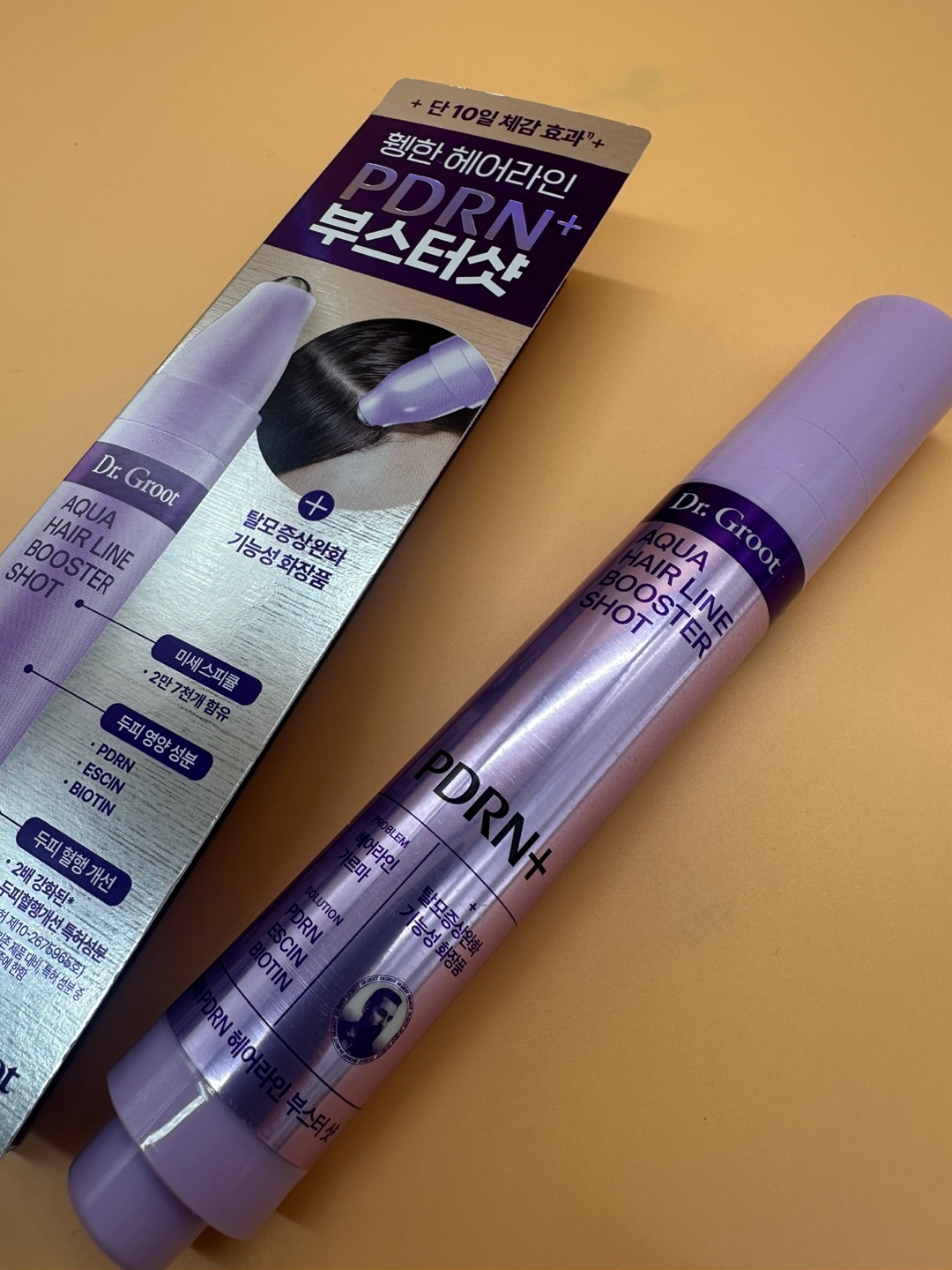 닥터그루트는 워낙 두피 케어와 탈모 관리 전문 브랜드로 유명하죠. 그중에서도 아쿠아 헤어라인 부스터샷은 PDRN 성분이 함유된 부스터샷 형태로, 두피 혈액 순환 개선과 모발 건강을 돕는 것이 특징입니다.