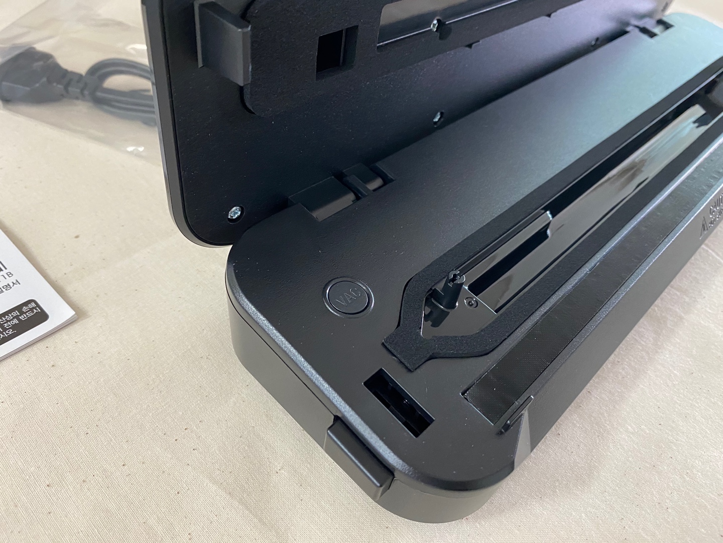 본체에 내장되어있는 컷팅칼로 진공팩의 한쪽면을 깔끔하게 정리해줍니다