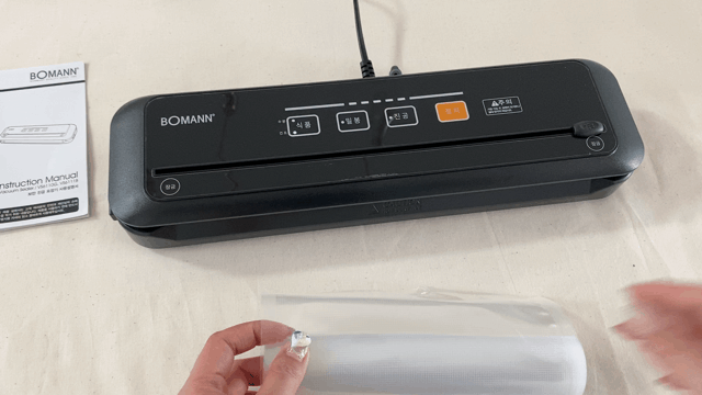 보만 진공압축기는 본체에 칼날이 내장되어있어서 진공팩을 따로 가위로 자를필요 없이 간편하게 컷팅할수있습니다.