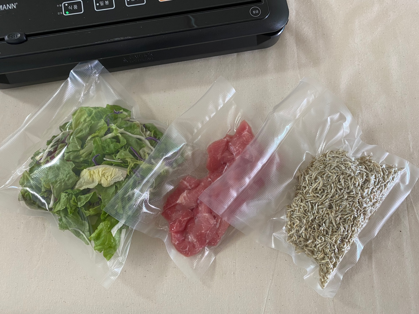 추가 진공팩 구매 필요 - 기본 제공되는 3개의 진공팩이 소진되면 별도로 구매하여야 합니다. 실제적으로 전 3개 다쓰고나니 창고에 쟁여놓게 되더라구요(오늘 다시한번 꺼내봐야겠습니다)