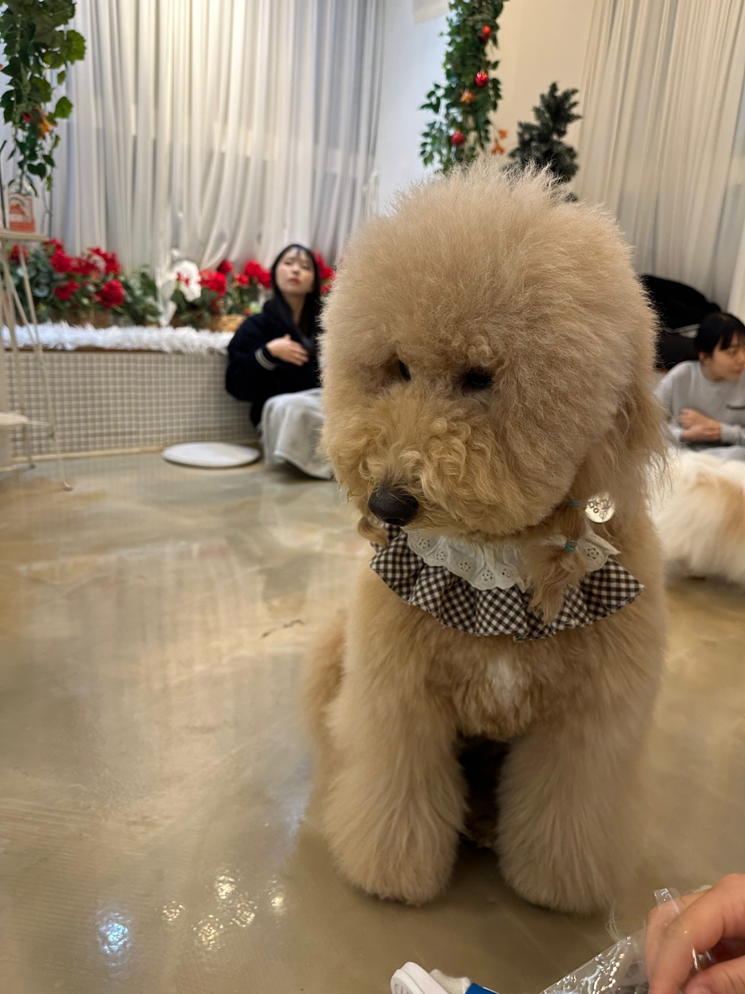 그리고 이 친구는 슈슈입니다. 스탠다드푸들인데, 사진으로 보는 것보다 실제로 보면 훨씬 더 커서 깜짝 놀랐답니다!