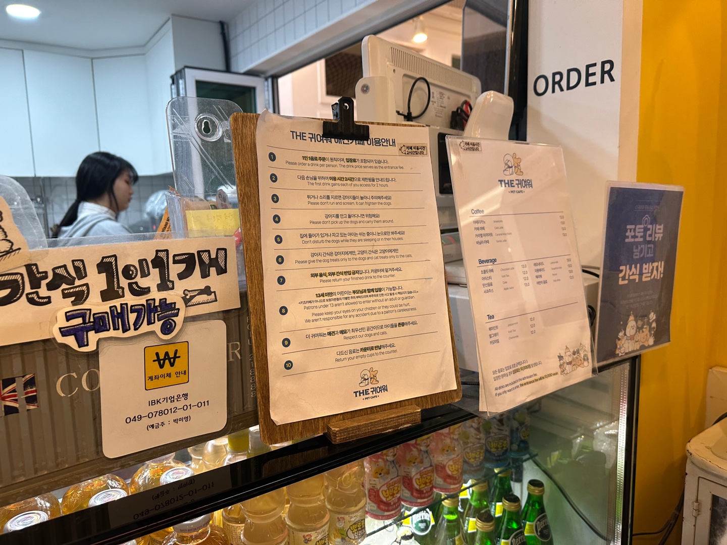 더귀여워 애견카페 이용 요금 및 특별한 간식 정책