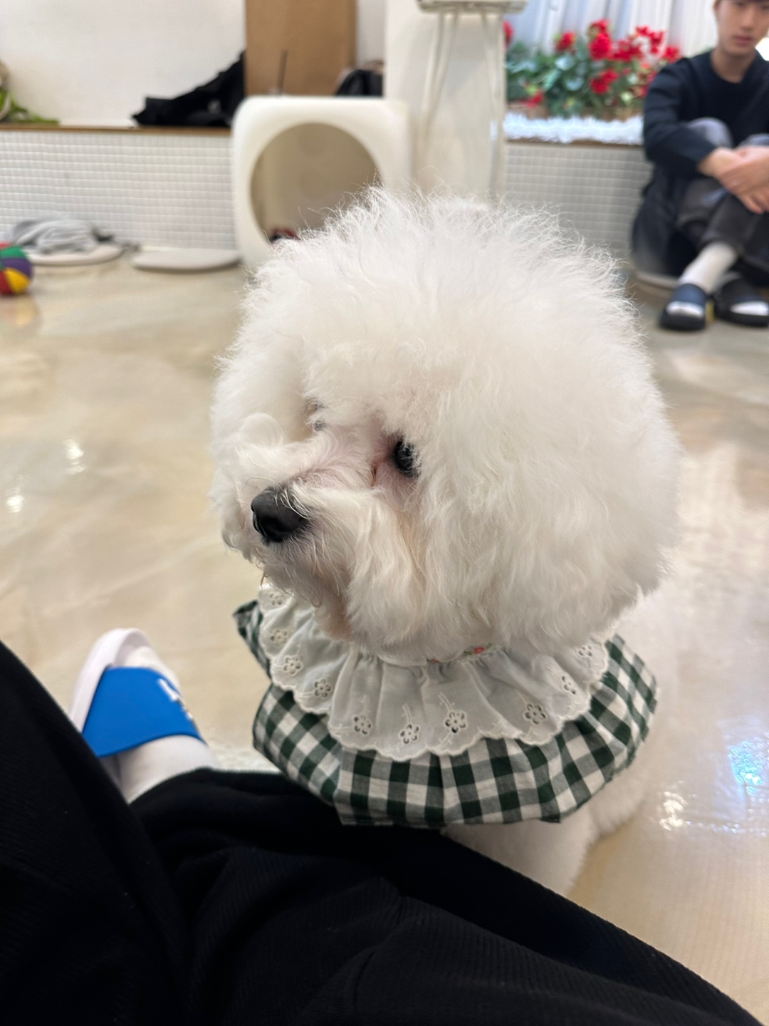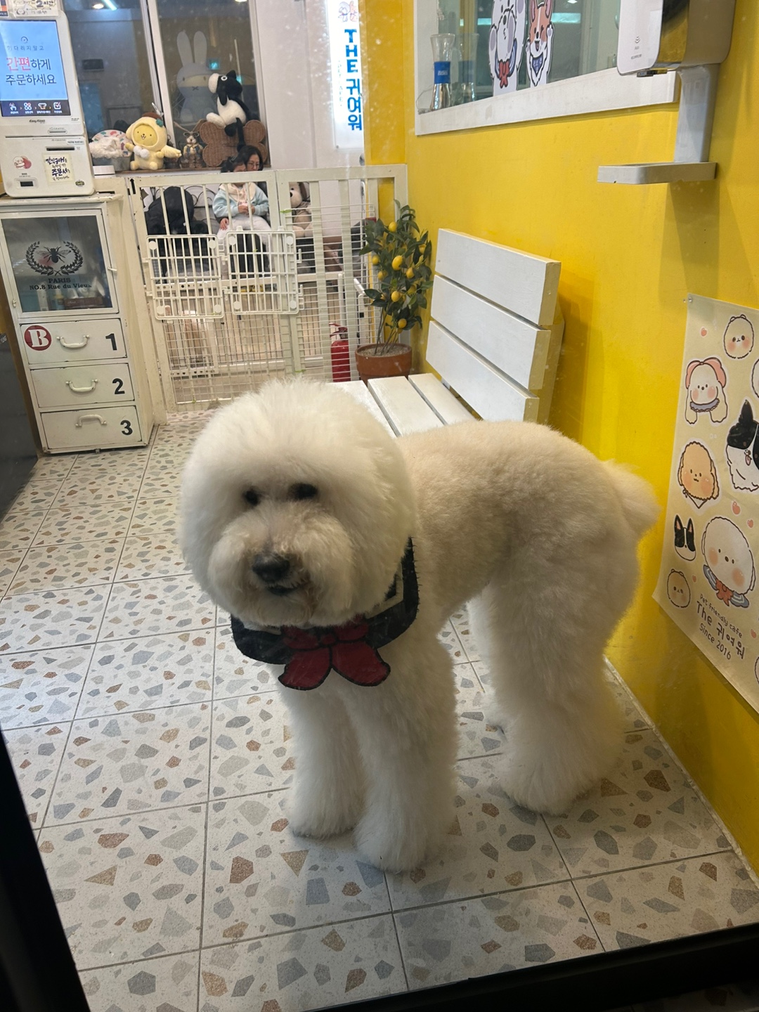 그리고 이 친구는 슈슈입니다. 스탠다드푸들인데, 사진으로 보는 것보다 실제로 보면 훨씬 더 커서 깜짝 놀랐답니다!