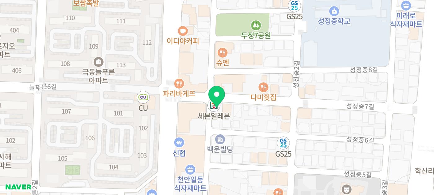 주소 : 충청남도 천안시 서북구 성정중7길 8 1층 세이유네일