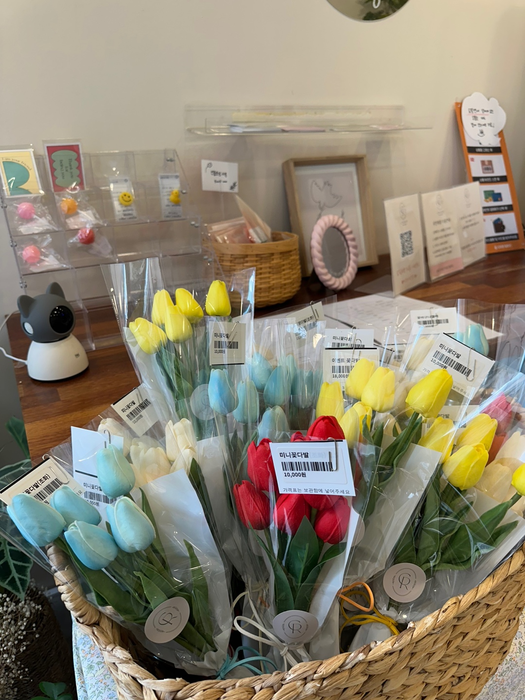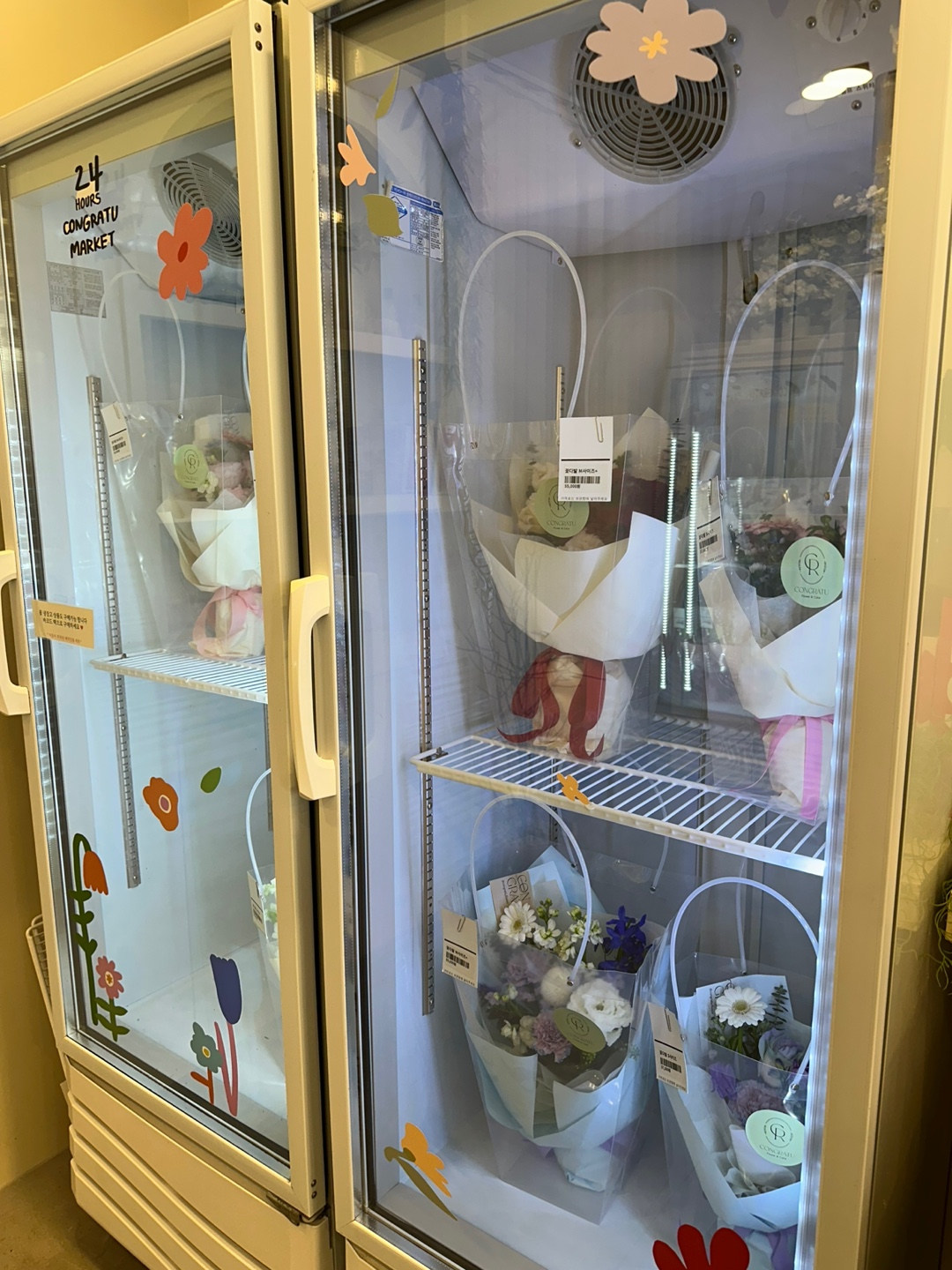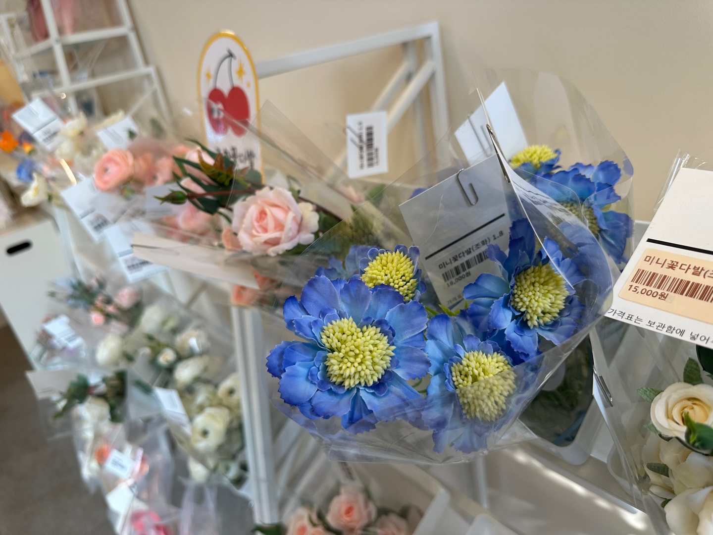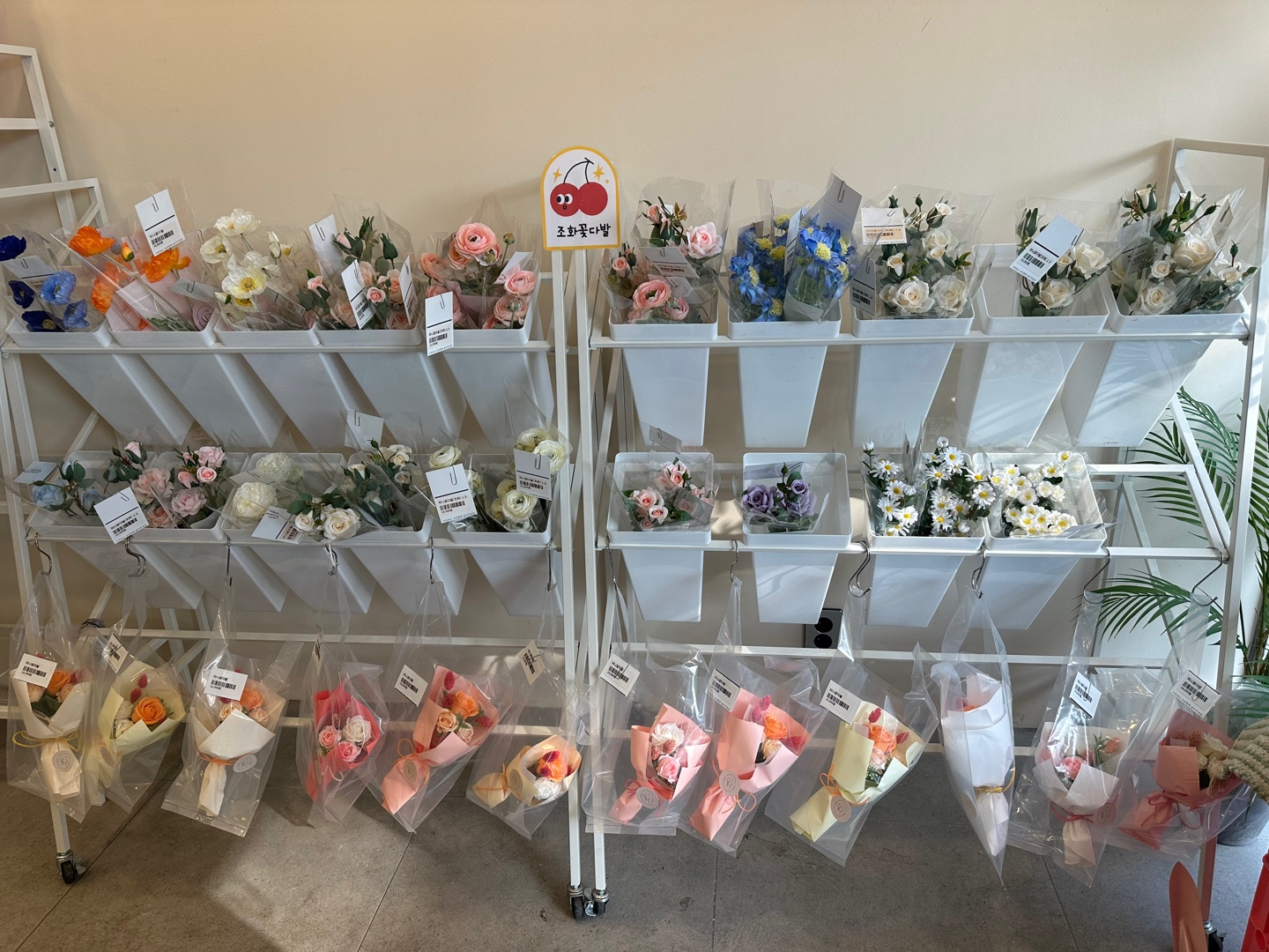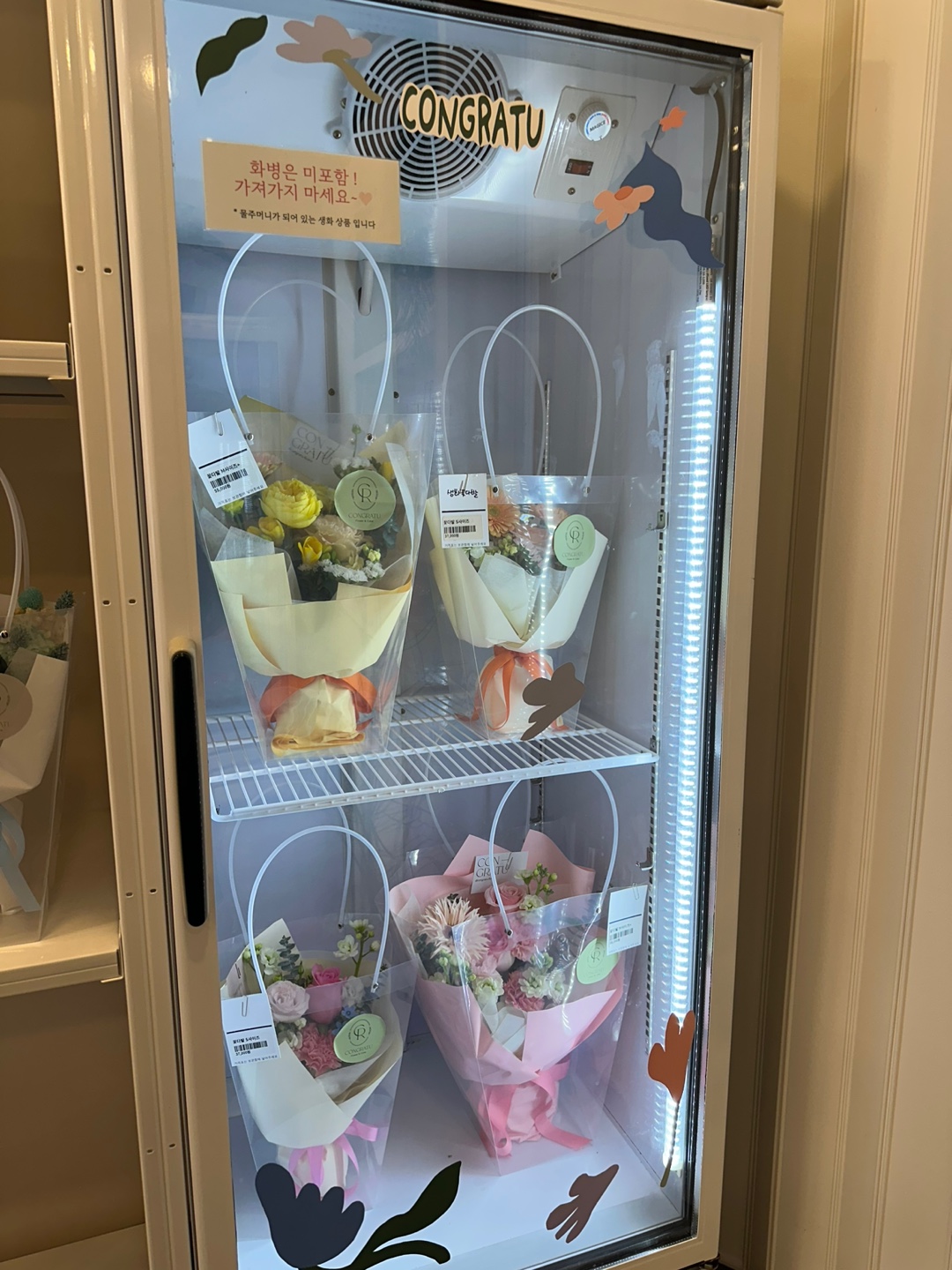 이벤트용 꽃다발이 귀엽게 진열돼 있었고요,