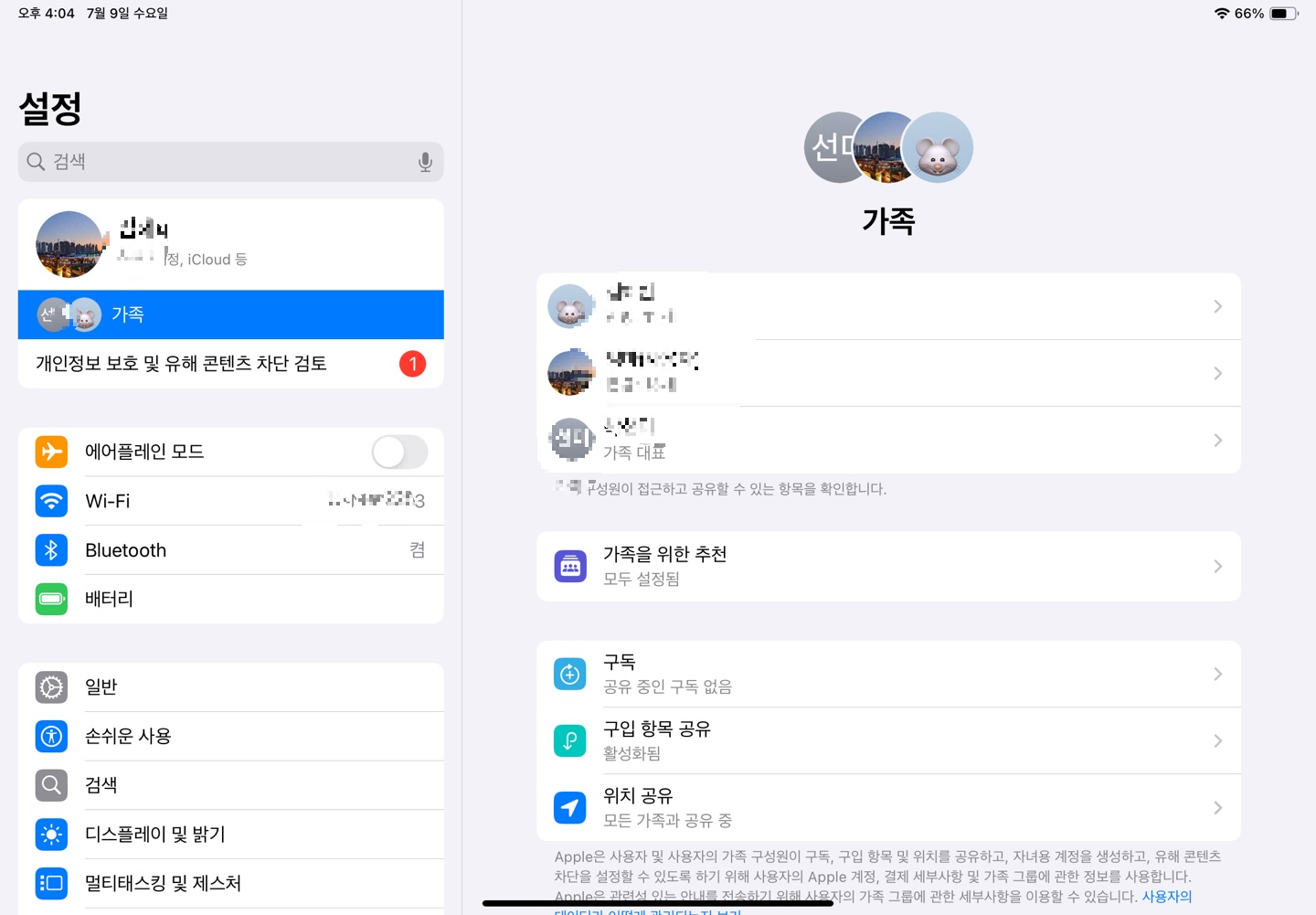 온라인에서 아이패드 앱 가족공유를 검색해보면 "설정에서 가족에 들어가서 구입 항목 공유, 공유중인 구독" 어쩌고하는