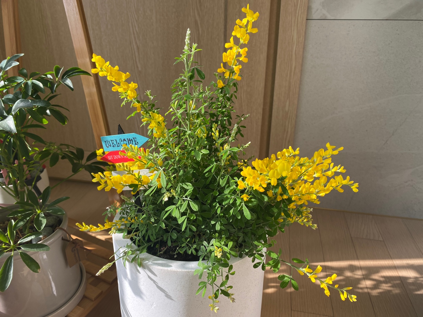 꽃이 피는 모습은 정말 경쾌해요. 작고 풍성한 노란 꽃들이 가지 끝마다 흐드러지게 피어나죠.