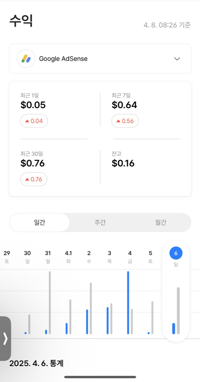 저는 그 길을 막 시작했고, 하루하루 설레는 마음으로 구글 애드센스 앱을 켜봐요.