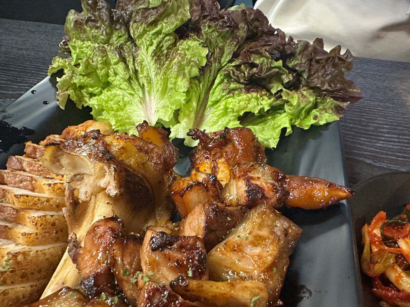 직화 바베큐 보쌈은 은은한 숯불 향이 배어 있어 색다른 매력을 줘요.