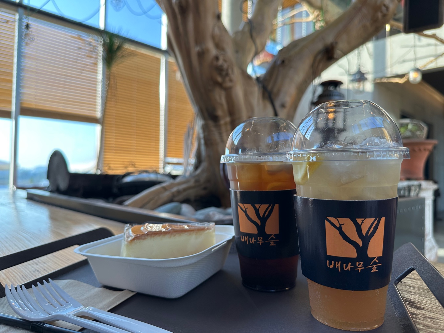 아이스 아메리카노 / 꿀배에이드 / 치즈케이크만 간단히 주문했어요.
