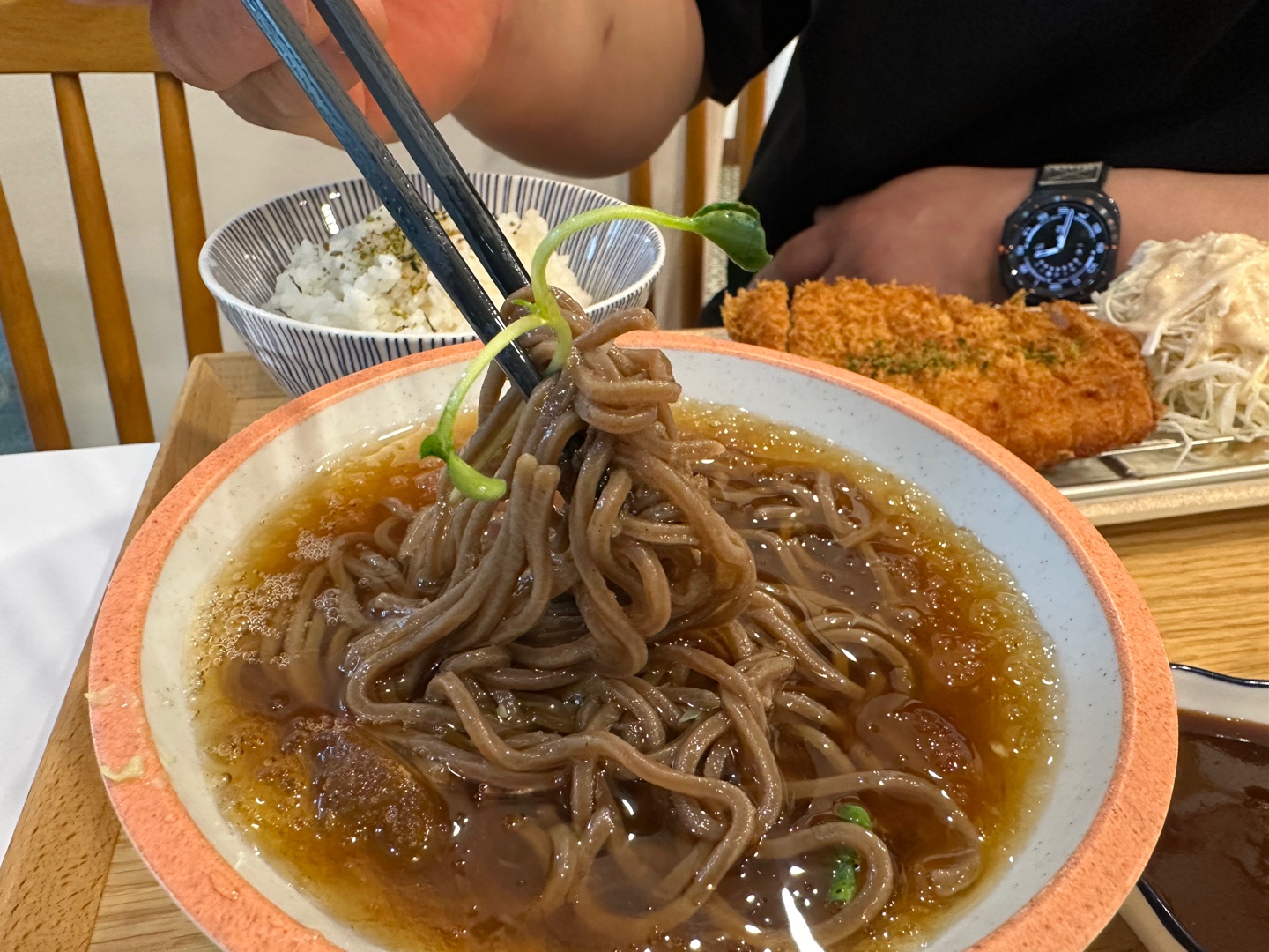 시원한 냉모밀 + 바삭한 돈가츠 조합은