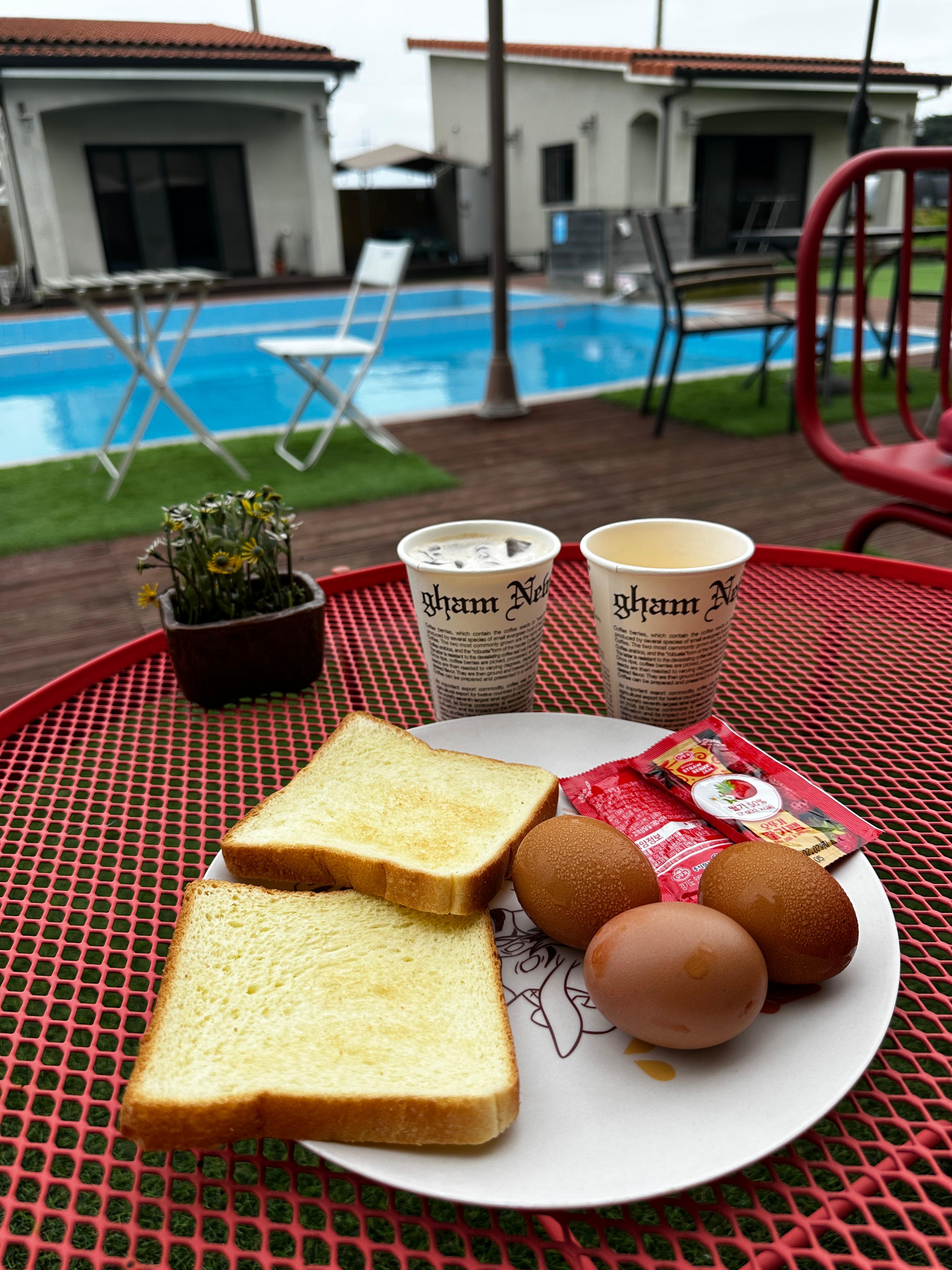 다음날 아침 골드독 강아지수영장 옆에 위치한 자그마한 카페에서 조식을 해결했어요